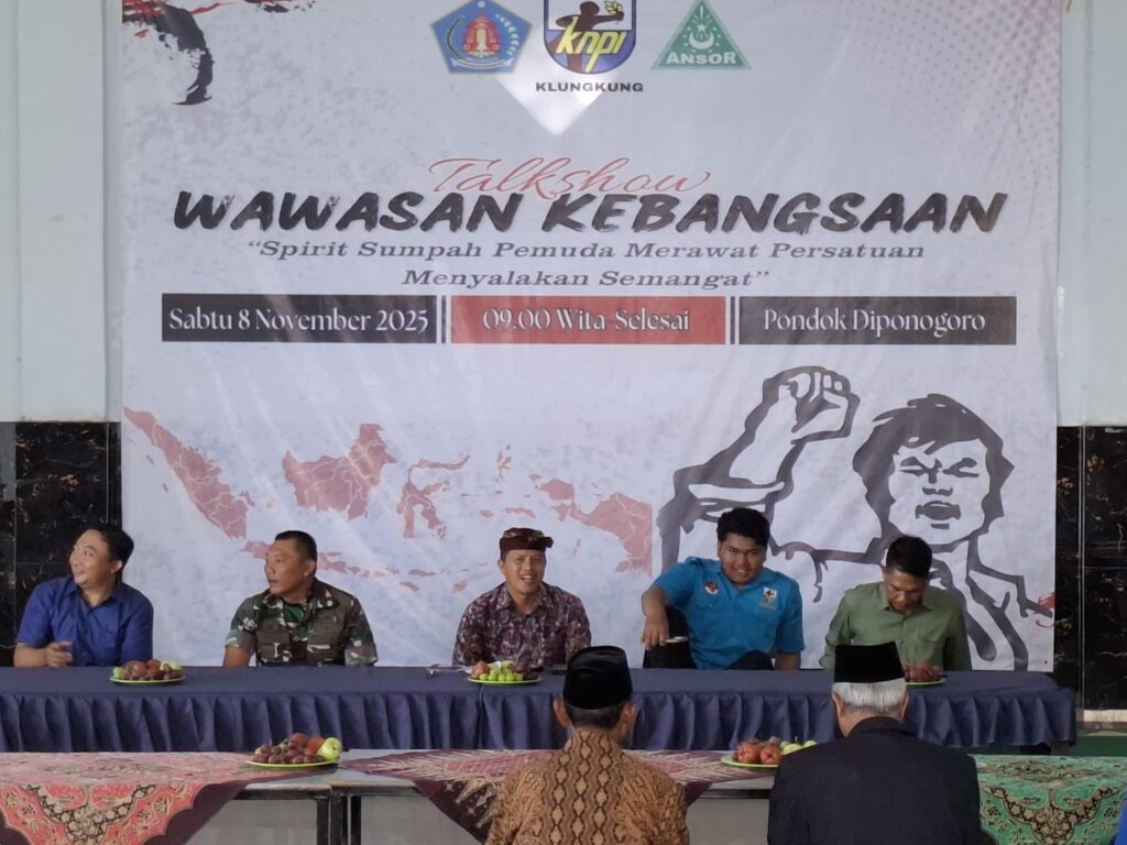 🗓️ Acara yang berlangsung pada hari Sabtu, 8 November 2025, ini mengambil lokasi di Pondok Pesantren Diponegoro Klungkung. Talkshow ini mengusung tema penting: “Peran Serta Pemuda Klungkung dalam Semangat Bela Negara”.